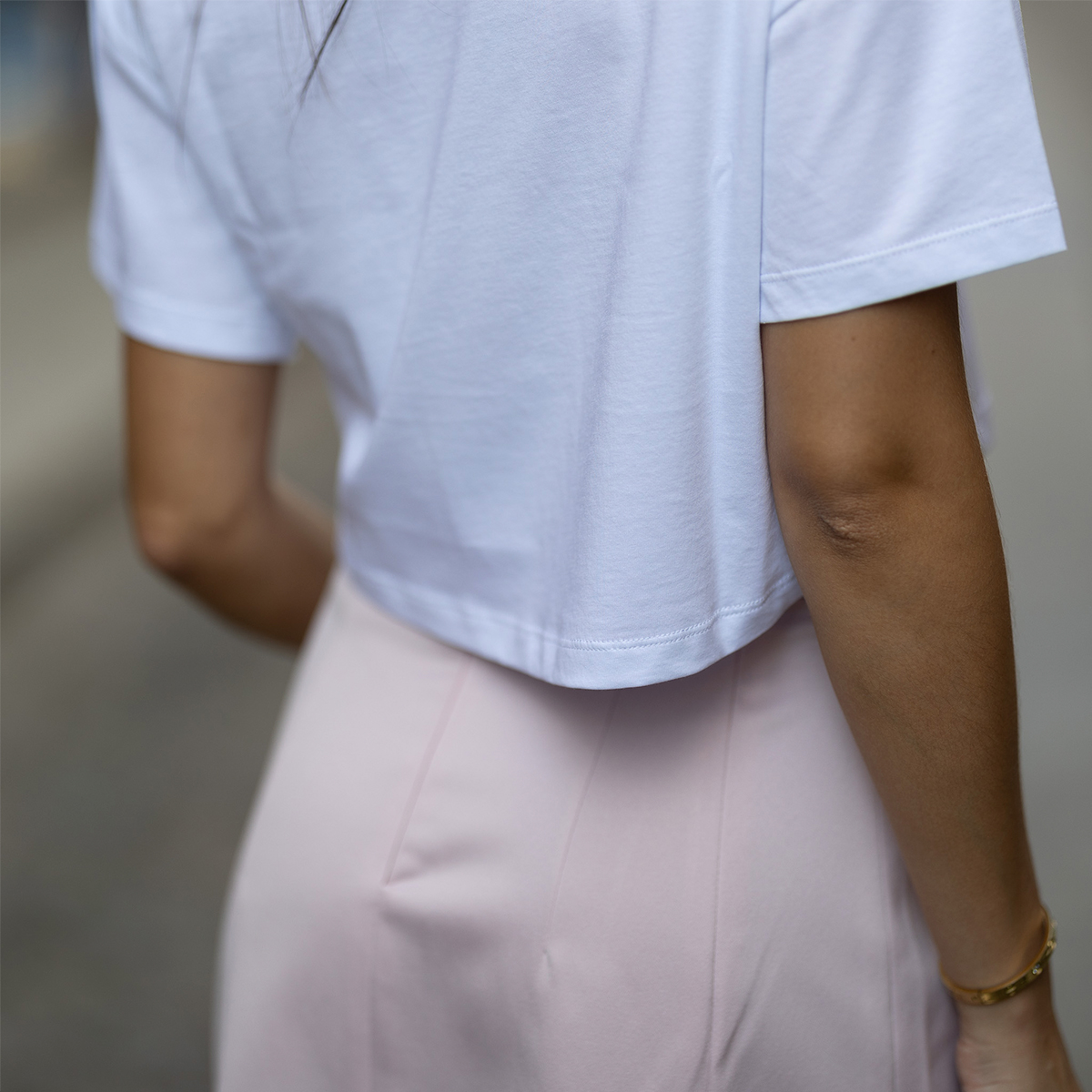 Detalhes: decote redondo/ manga curta/ cropped/ algodão